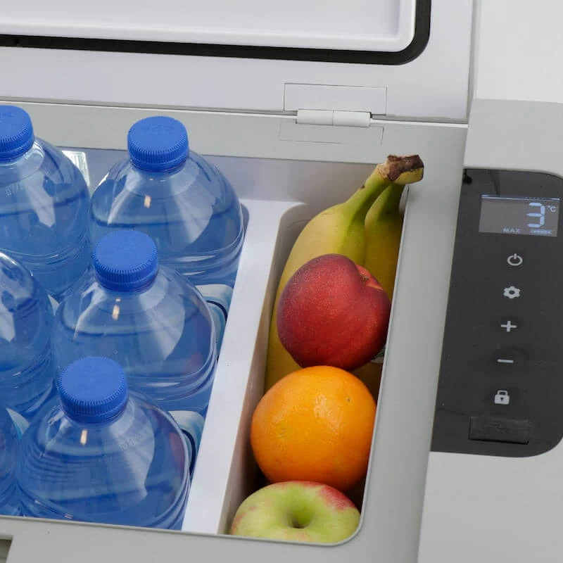 Sa capacité de 25 L accueillera aisément des bouteilles de 1 L. Elle est également dotée d’un petit compartiment pour ranger les denrées alimentaires plus petites. Elle dispose d’un prise USB permettant de recharger son téléphone portable par exemple.